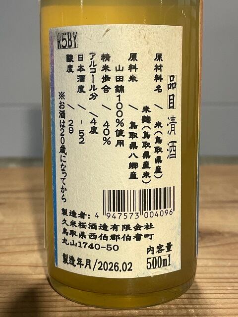 原料米:山田錦100%(鳥取県八郷産)