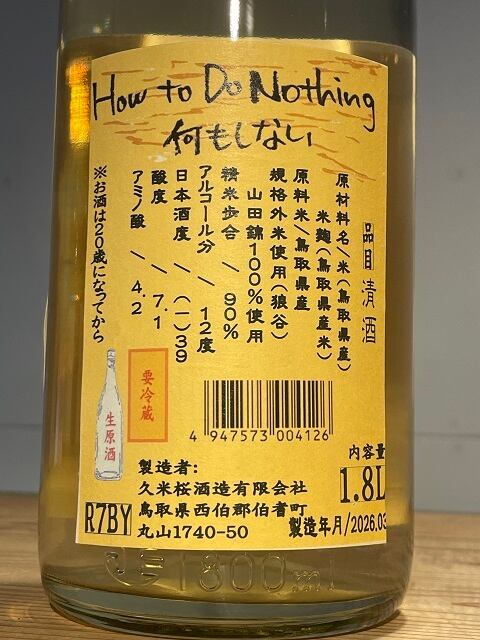 ((本数限定))久米桜酒造 久米桜 何もしない How to Do Nothing 生原酒 R7BY 1800ml | Un Jour Marche(アンジュール マルシェ) ワイン専門店 / 日本酒専門店